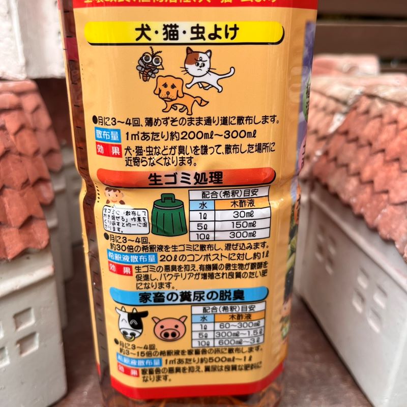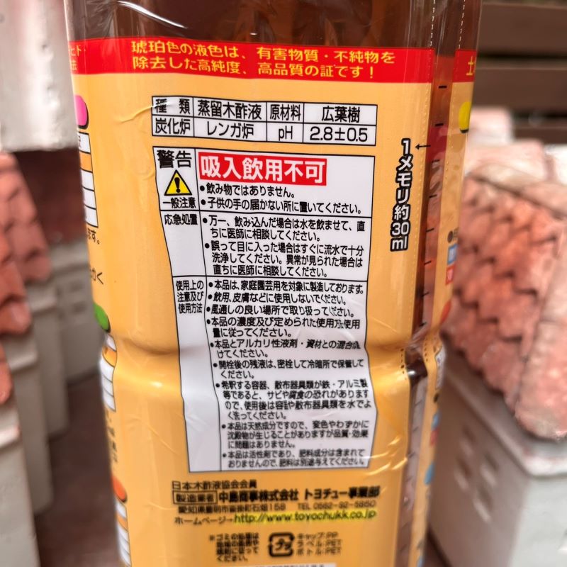 木酢液は、木材を炭にする際に発生する蒸気を冷却して得られる天然成分の液体です。適切に精製された木酢液は植物や土壌に良い影響を与えますが、未精製のものにはタール成分や有害物質が含まれることがあります。本商品は有機酸を調整済みで、安心して使用できます。ただし、濃度の高い状態での使用は避け、適切に希釈してください。