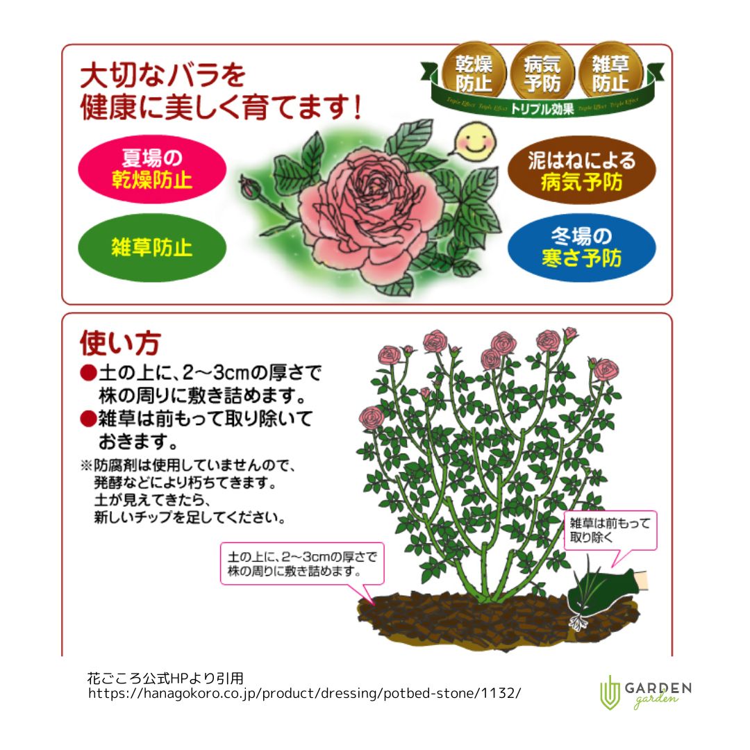 マルチングチップは、バラの健康な成長に欠かせない環境を整えてくれる優れたアイテムです。