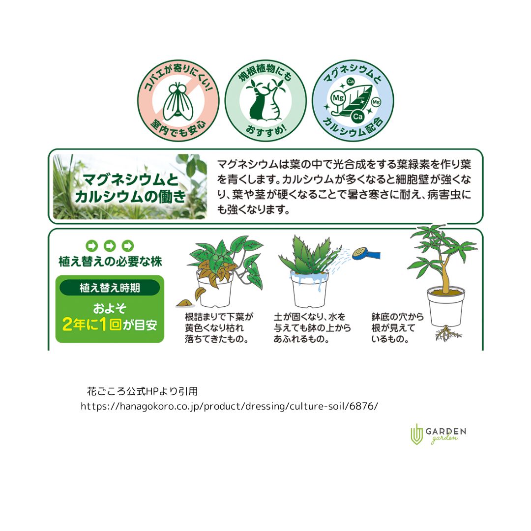 鹿沼土やパーライトなどの鉱物質原料を主に配合し、コバエを寄りにくくしました