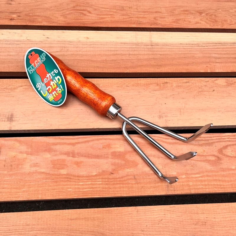 西洋式の掃除道具で、爪が長くしっかりしているため、芝生の手入れや土ならしに向いています。金属製が多く、耐久性に優れています。
