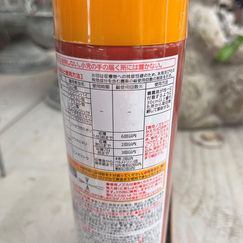 - 用途:庭木・草花・野菜・果樹用殺虫スプレー